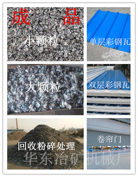 金屬彩鋼瓦破碎粉碎后的物料光亮干凈,便于運(yùn)輸,減少了運(yùn)輸成本,鋼廠(chǎng)煉鋼時(shí)收得率提高,經(jīng)破碎粉碎后的廢金屬材料,銷(xiāo)路很好,利潤(rùn)空間提高,練出的鋼水與投入的廢鋼比例高(產(chǎn)出比高),爐內(nèi)的化學(xué)成分穩(wěn)定、受熱均勻、鋼水重磷、硫含量低、加料密度增加,加料次數(shù)減少,爐內(nèi)耐火材料襯里壽命延長(zhǎng),冶煉時(shí)空氣污染減少、操作容易、耗能降低、利潤(rùn)空間大。