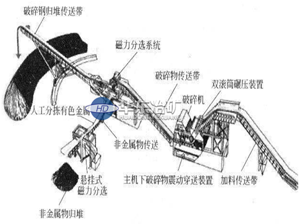 6:廢鋼破碎機配備強磁分選輸送機可在廢鋼完成出料瞬間完成金屬和非金屬的快速分選;