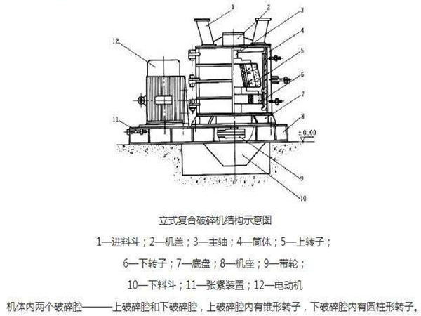立軸復(fù)合式破碎機(jī)組成:立軸復(fù)合式破碎機(jī)主要由進(jìn)料斗,機(jī)蓋,主軸,簡(jiǎn)體,上轉(zhuǎn)子,下轉(zhuǎn)子,底座,機(jī)座,帶輪,下料斗,張緊裝置,電動(dòng)機(jī)等部件組成。